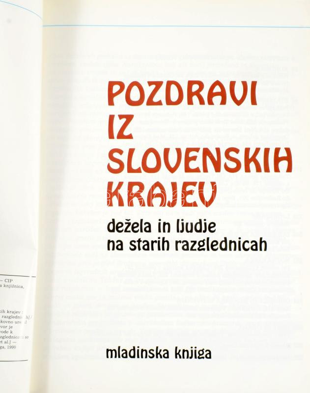 Pozdravi iz slovenskih krajev. Dežela in ljudje na starih razglednicah. Ljubljana, 1990, Mladinska knjiga, 384 p. Gazdag képanyaggal illusztrálva. Szlovén nyelven. Kiadói egészvászon-kötés. / In Slovenian language. Hardcover.