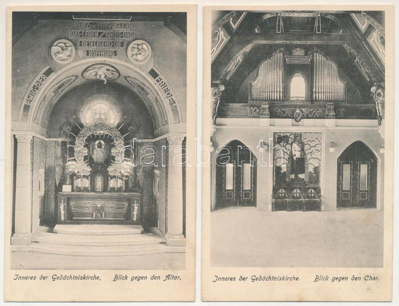 Heldengedächtniskirche. Heldenfriedhof in Korneuburg: Erbaut von Soldaten der k.u.k. Eisenbahntruppe in den Kriegsjahren 1915-1917. / Első világháborús osztrák-magyar katonai emléktemplom belsők - 2 db RÉGI képeslap / WWI K.u.k. military church interior - 2 pre-1945 postcards