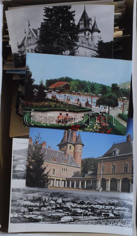 300-400 modern képeslap, főleg magyar városképek + kevés külföldi és motívum, valamint régi jó magyar lapokról készült fényképek, érdekes tétel
