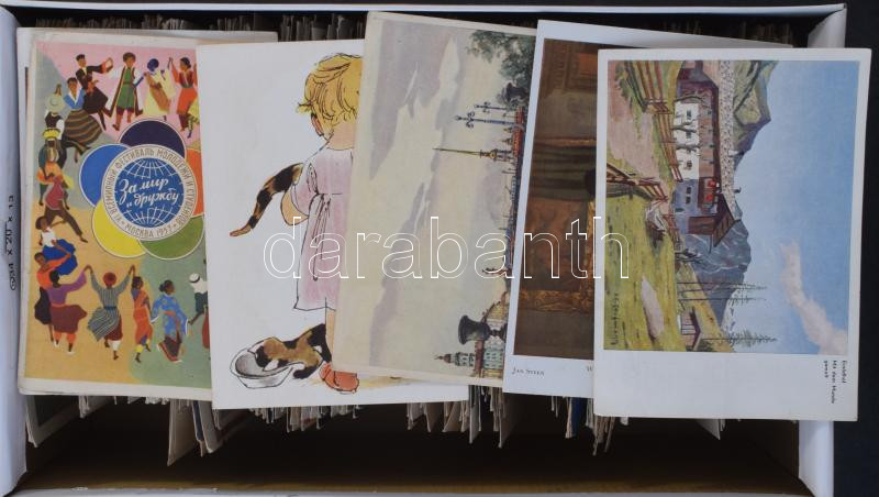 600-700 db vegyes minőségű festmény reprodukció és üdvözlő képeslap cipős dobozban