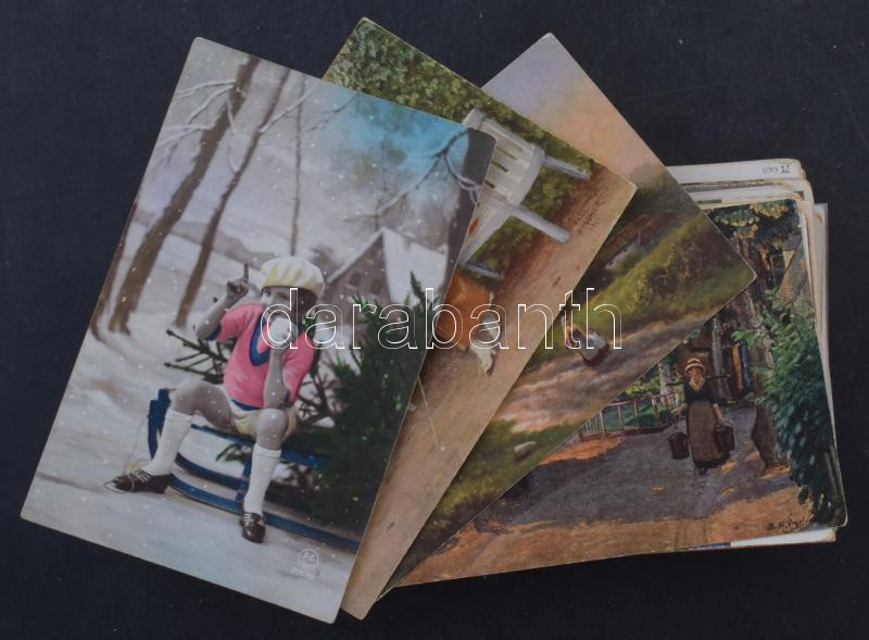 100 db RÉGI művészlap, sok megíratlan / 100 pre-1945 art postcards, many unused