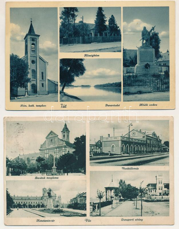 2 db RÉGI magyar város mozaiklap: Vác és Tát / 2 pre-1945 Hungarian multi-view town postcards