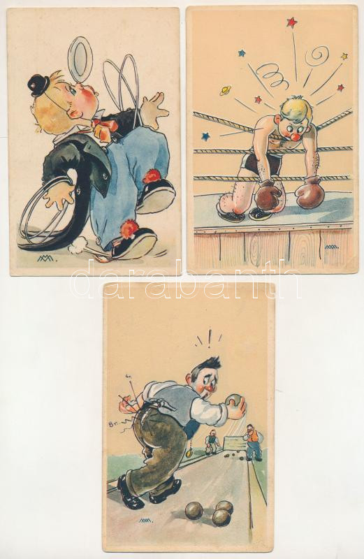 3 db RÉGI olasz humoros grafikai művészlap / 3 pre-1945 Italian humour art postcards