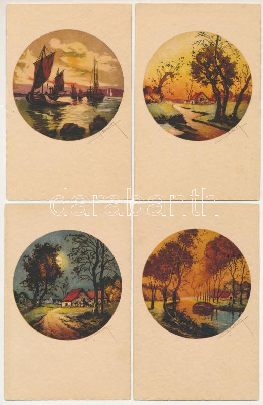 4 db RÉGI olasz tájkép művészlap, Italien Gravur 1782. / 4 pre-1945 Italian landscape art postcards