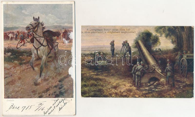 6 db RÉGI motívum képeslap: első világháborús német és osztrák-magyar katonai művészlapok vegyes minőségben / 6 pre-1945 motive postcards: WWI German and K.u.K. military art postcards in mixed quality