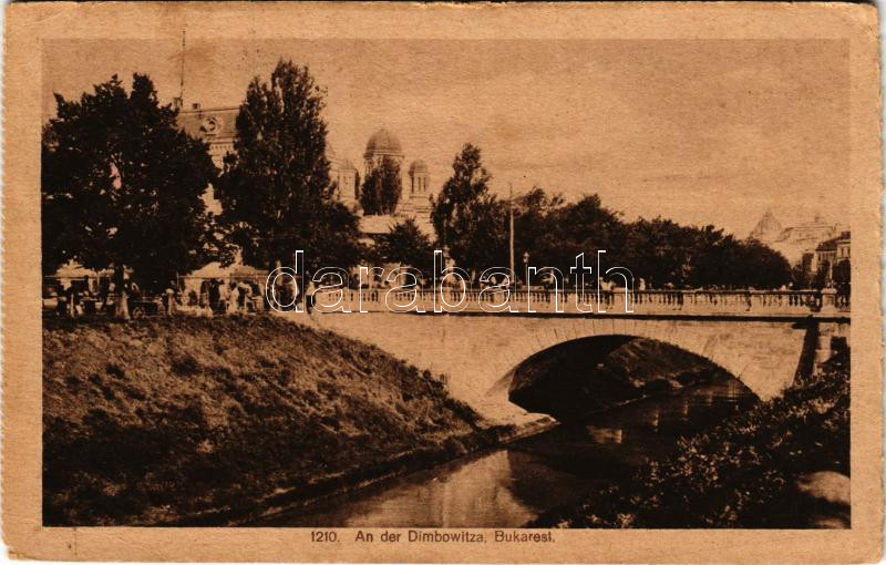 1918 Bucharest, Bukarest, Bucuresti, Bucuresci; An der Dimbowitza / Dambovita riverside, bridge - from postcard booklet (EM)