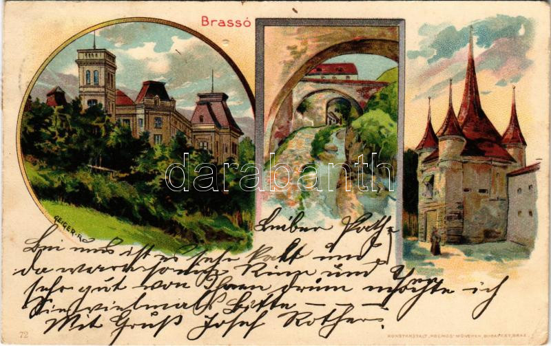 1900 Brassó, Kronstadt, Brasov; Lövölde, Katalin kapu, Árokmente / shooting hall, city gate, Graft. Kosmos S. litho s: Geiger R. (lyuk / pinhole)