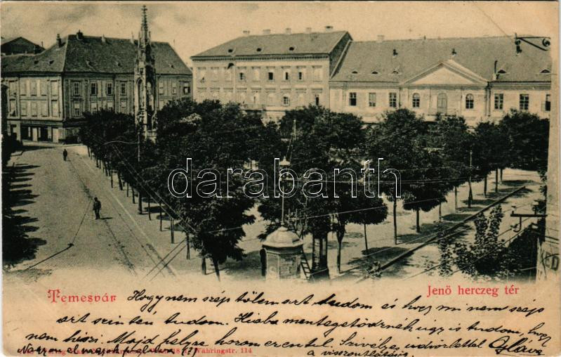 1900 Temesvár, Timisoara; Jenő herceg tér, Rukavina emlékmű, hirdetőoszlop. Hans Nachbargauer kiadása / square, monument, advertising column (EK)