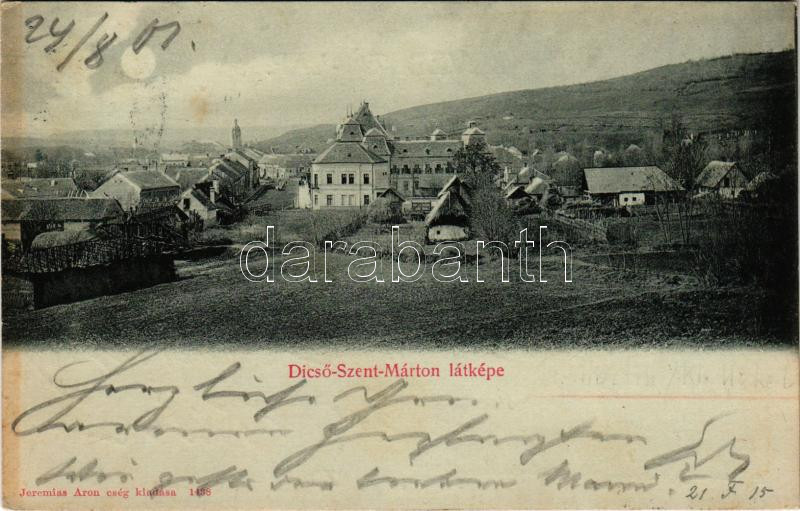 1901 Dicsőszentmárton, Tarnaveni, Diciosanmartin; látkép este holdfényben. Jeremiás Áron kiadása / general view at night in moonlight (fl)