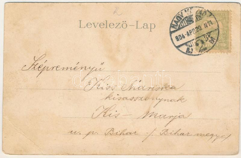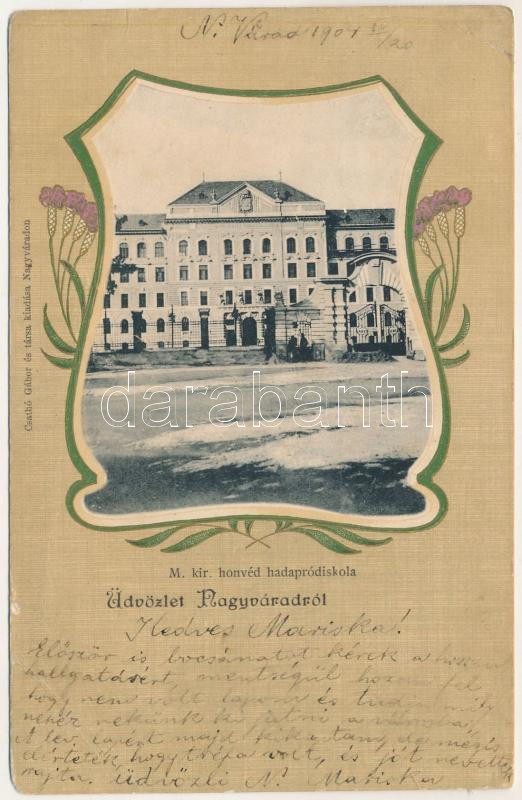 1904 Nagyvárad, Oradea; M. kir. honvéd hadapródiskola. Csathó Gábor és társa kiadása, szecessziós-virágos litho keret / K.u.K. military cadet school. Art Nouveau, floral, litho frame (fa)