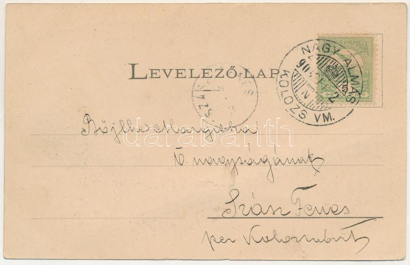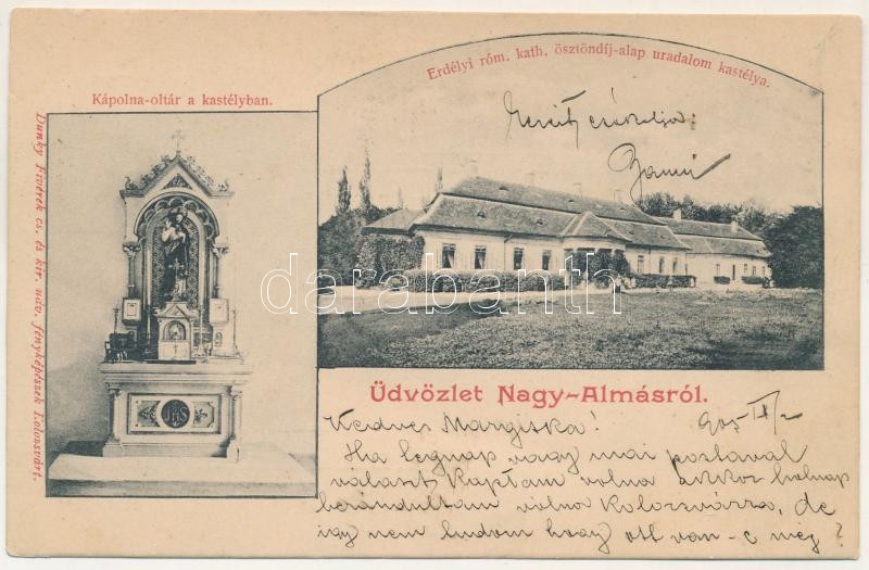 1905 Nagyalmás, Almasu Mare; Erdélyi római katolikus ösztöndíjalap uradalom kastélya, kápolna oltár a kastélyban. Dunky Fivérek cs. és kir. udvari fényképészek / castle, chapel altar, interior. Art Nouveau (apró szakadás / tiny tear)