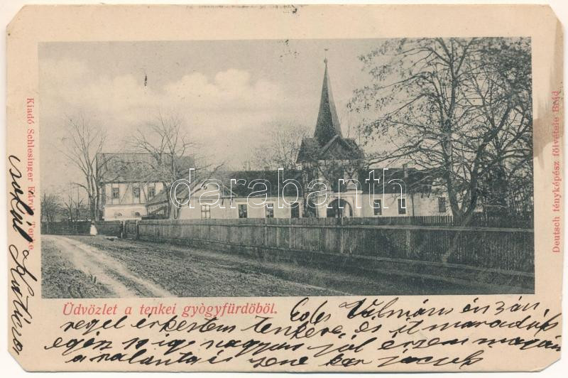 1906 Tenke, Tinca; Gyógyfürdő. Schlesinger Károly kiadása, Deutsch fényképész felvétele / spa, bathhouse (vágott / cut)