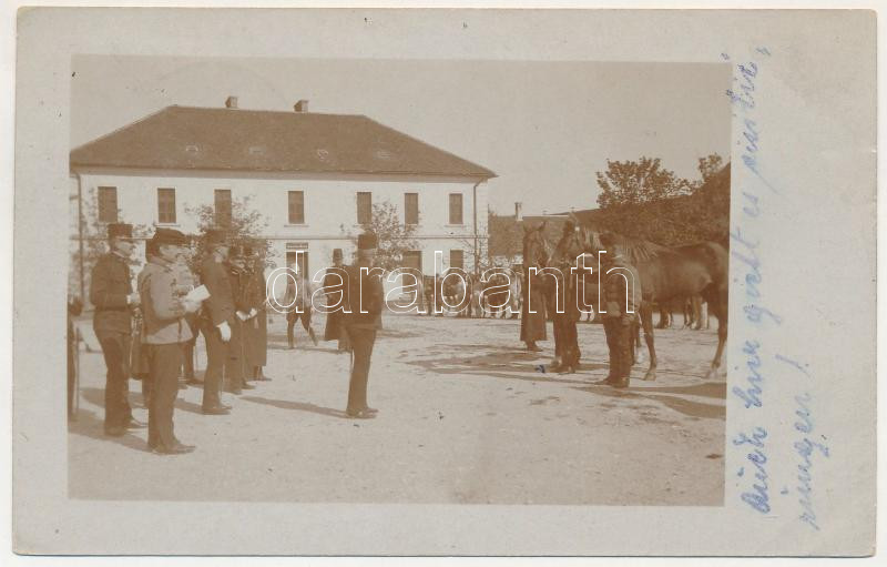 1908 Brassó, Kronstadt, Brasov; osztrák-magyar huszárok / K.u.K. military hussars by the stables. photo (EB)