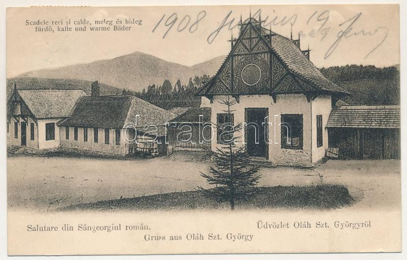 1908 Oláhszentgyörgy, Sangeorgiul Roman, Sangeorz-Bai; Meleg és hideg fürdő / Scaldele reci si calde / spa, bathhouses (EK)
