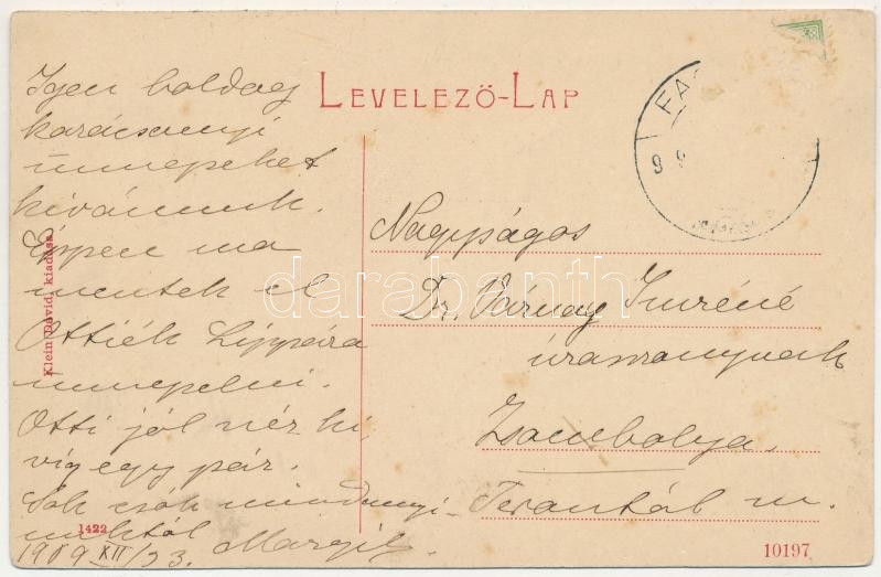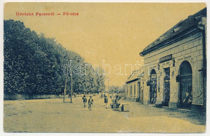 1909 Facset, Facsád, Faget; Fő utca, Klein Dávid üzlete és saját kiadása 1422. (W.L. ?) / main street, publisher's shop (felületi sérülés / surface damage)
