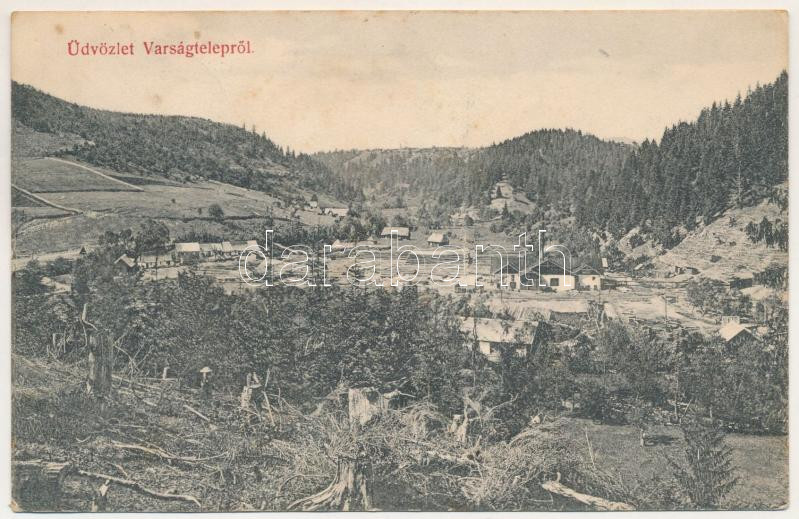 1909 Varságtelep, Székelyvarság, Varsag; látkép, fűrésztelep, fatelep. Ferentzy és Kováts felvétele után / view, forestry, sawmill, lumber yard (fl)