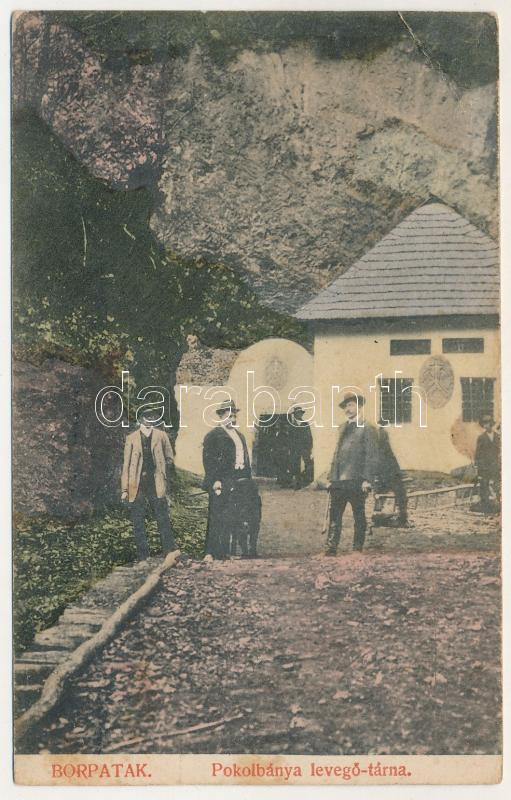 1911 Borpatak, Valea Borcutului; Pokol-bánya levegő tárna, bányászok munka közben, aranybánya / gold mine with miners working (EB)