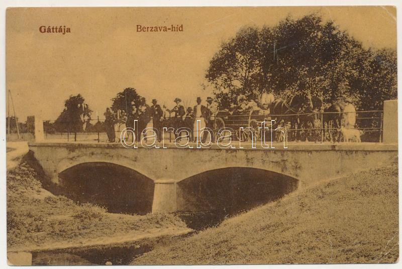 1912 Gátalja, Gáttája, Gataia; Berzava híd, lovaskocsi / Barzava river bridge, horse-drawn carriage (EK)