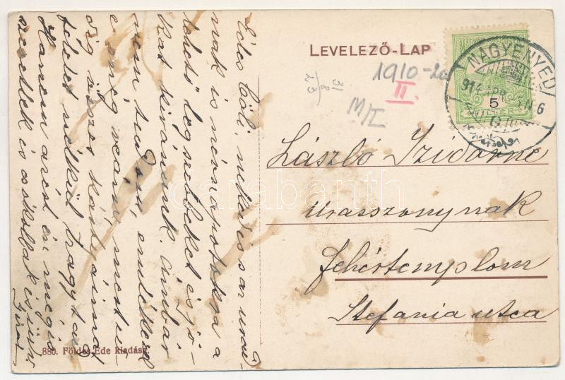 1914 Nagyenyed, Aiud; Fő tér, híd, templomok, Gazdasági Bank. Földes Ede kiadása / main square, bridge, churches, bank (fl)
