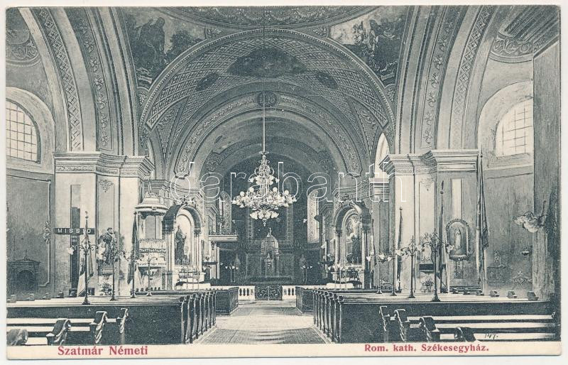 1915 Szatmárnémeti, Szatmár, Satu Mare; Római katolikus székesegyház, belső. Reizer János kiadása / cathedral, interior