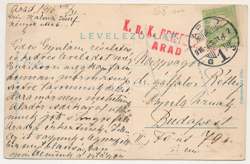 1916 Hátszeg, Hateg; utca részlet, híd. Kendoff A. és fia kiadása / bridge, street view + "K.u.k. Briefzensur Arad" (EK)