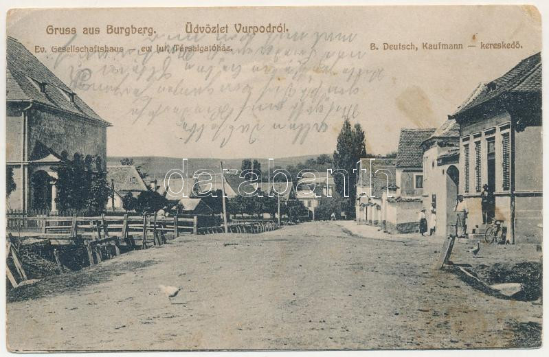 1916 Vurpód, Vurpar, Burgberg; Evangélikus társalgóház, B. Deutsch üzlete / Ev. Gesellschaftshaus, B. Deutsch Kaufmann / Lutheran parlor, shop of Deutsch (EM)