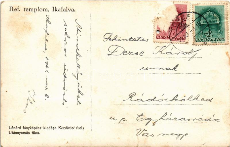 1941 Ikafalva, Icafalau; református templom. Lénárd fényképész kiadása / Calvinist church (b)
