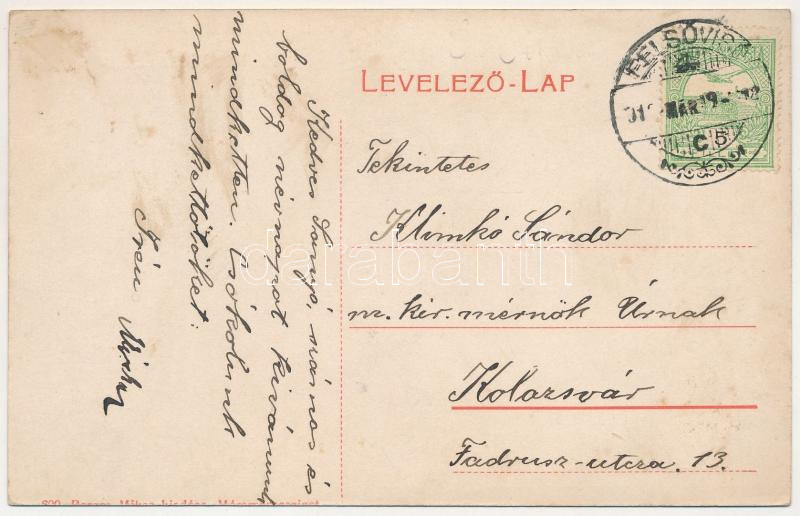 Felsővisó, Viseu de Sus; Fő tér, Engelmann üzlete. Berger Miksa kiadása / main square, shops (vágott / cut)