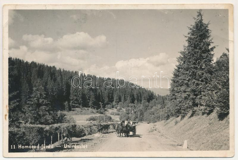 Homoród-fürdő, Baile Homorod; Úti részlet, lovaskocsi / road, horse-drawn carriage (EB)