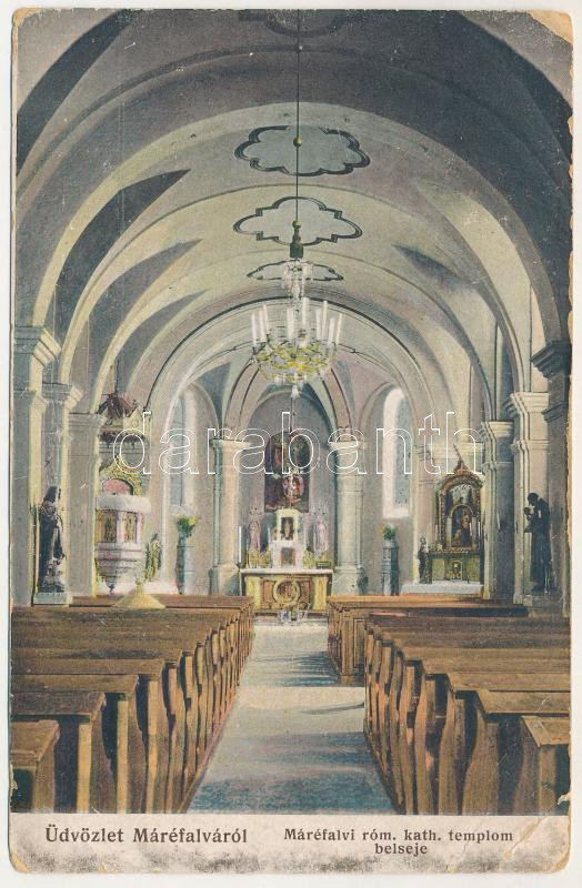 Máréfalva, Satu Mare (Hargita); Római katolikus templom belső. Lang Henrik kiadása / Roman Catholic church interior (EM)