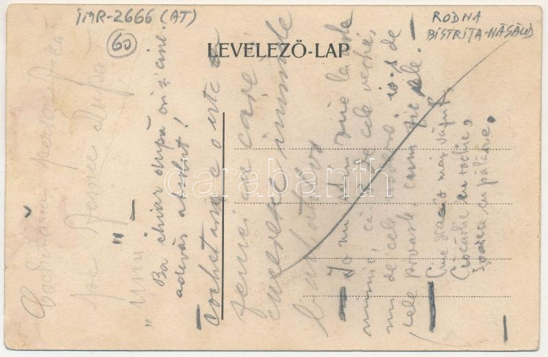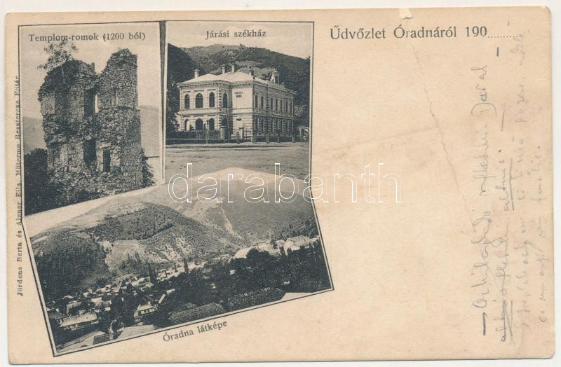 Óradna, Alt-Rodna, Radna veche, Rodna; Templomromok (1200-ból), látkép, Járási székház. Jördens Berta és Alzner Ella műterme kiadása / church ruins, district court, general view. Art Nouveau (ázott / wet damage)