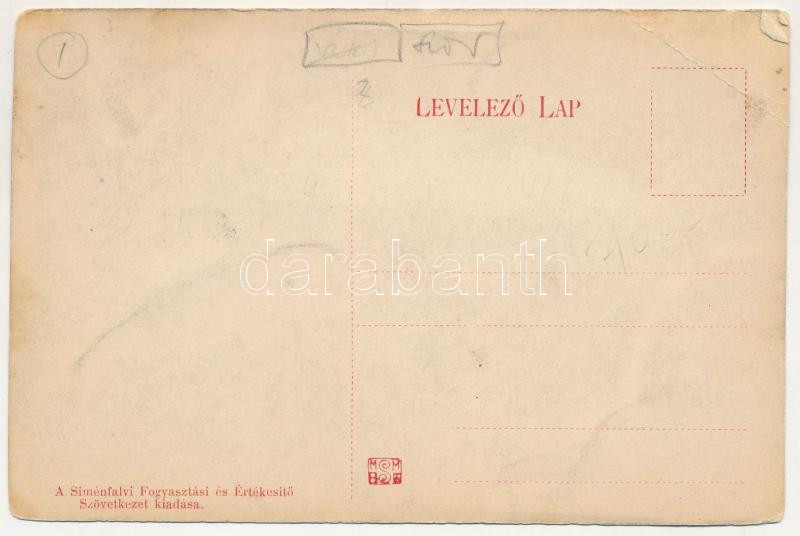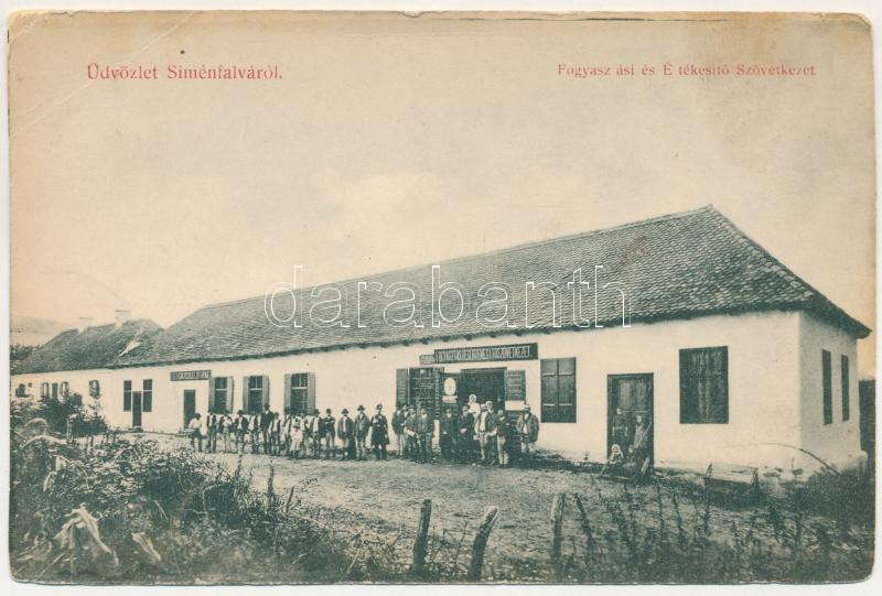 Siménfalva, Simonesti; Ifjúsági Egylet Otthona, Fogyasztási és Érékesítő Szövetkezet üzlete és saját kiadása / Youth Association Home, cooperative shop (EB)