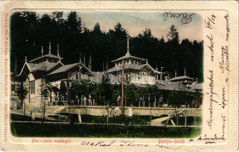 1903 Bártfafürdő, Bardejovské Kúpele, Bardiov, Bardejov; New York vendéglő, étterem. Eschwig Ede F. kiadása, Hajts Kornél felvétele / restaurant (EB)
