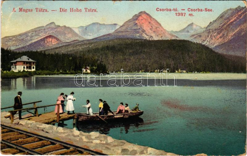 1912 Tátra, Magas-Tátra, Vysoké Tatry; Csorba-tó, "GIZELLA" csónak / Csorba-See / lake, boat (kopott sarkak / worn corners)