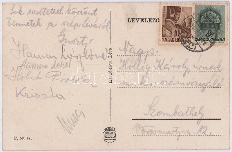 1943 Léva, Levice; Vármegyeháza, piac, Tóth Miklós üzlete. Hadjú foto / county hall, market, shops