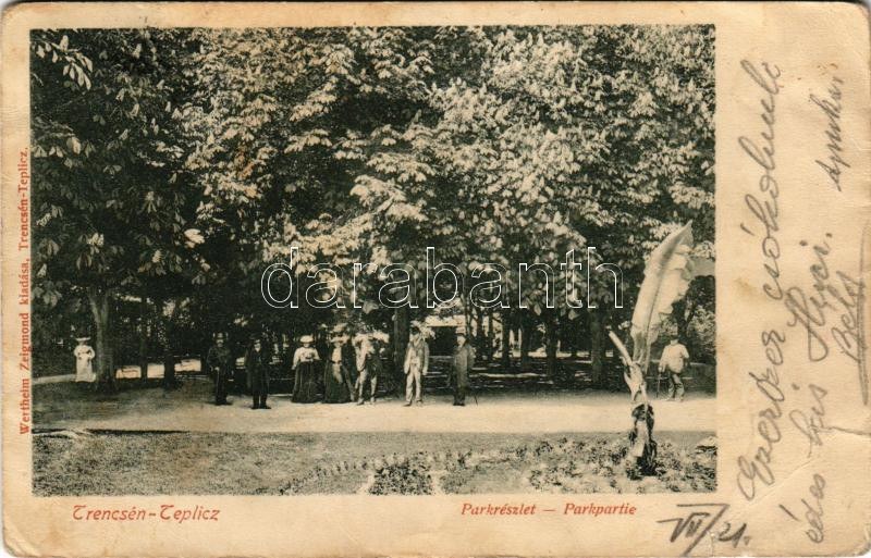 Trencsénteplic, Trencianske Teplice; Park részlet. Wertheim Zsigmond kiadása / park (szakadás / tear)