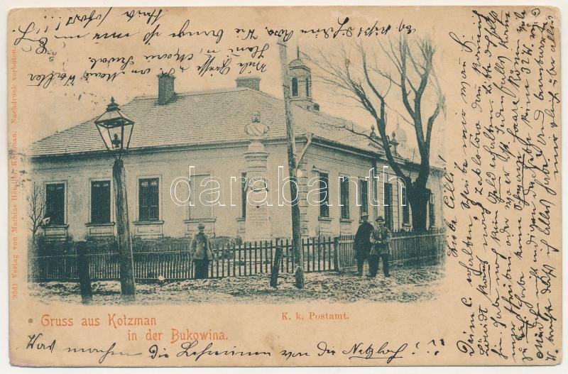 Kitsman, Cotmani, Cozmeni, Kotzman (Bukovina, Bucovina, Bukowina); K.k. Postamt. Verlag von Mathias Händler / post office (tear)