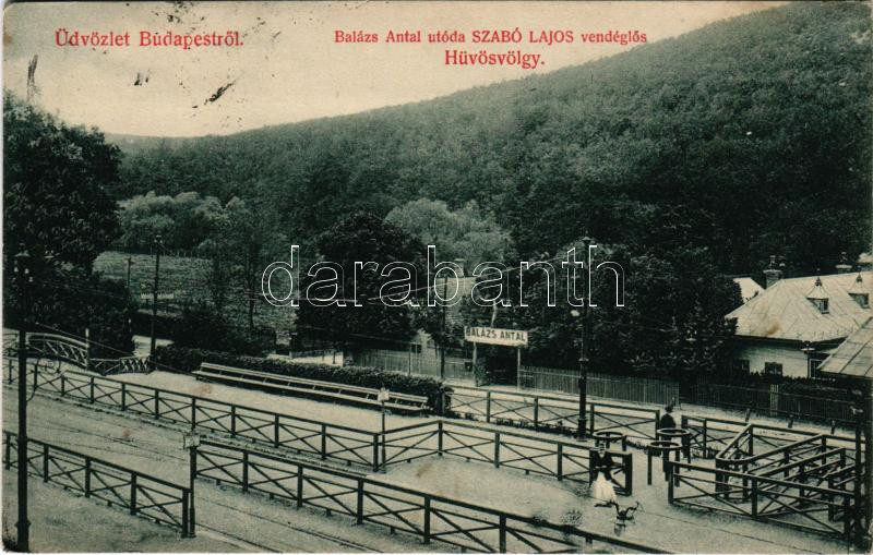 1909 Budapest II. Hűvösvölgy, Balázs Antal utóda Szabó Lajos vendéglős étterme. Rekord műintézet kiadása
