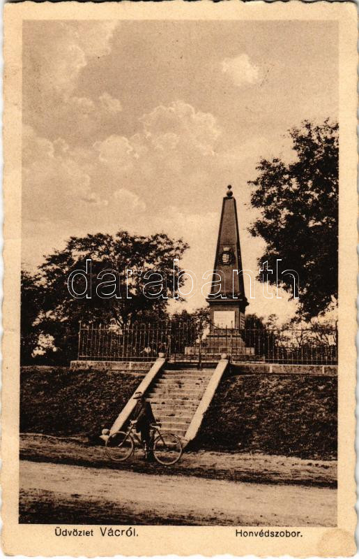 1939 Vác, Honvéd szobor, férfi kerékpárral. Schmidt Ferenc kiadása (gyűrődések / creases)