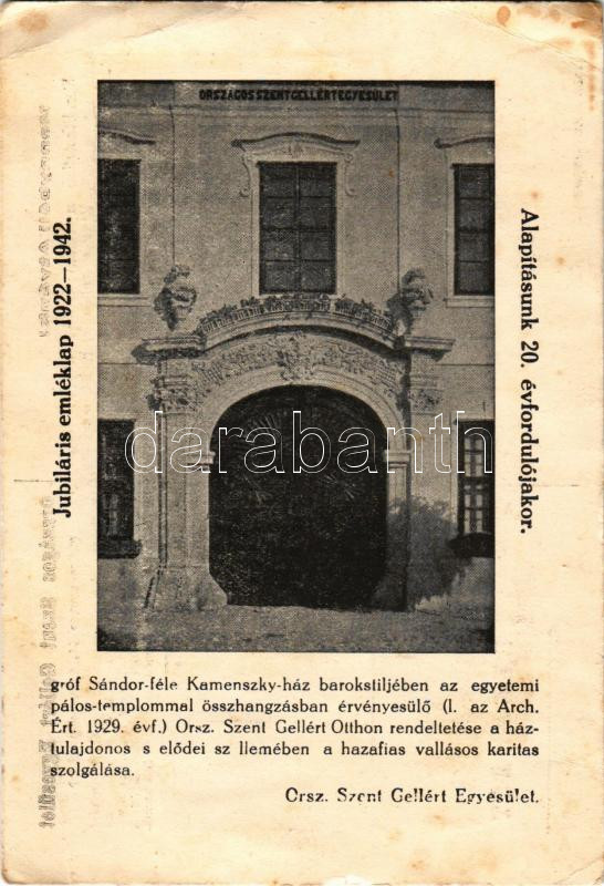 1942 Esztergom, Jubiláris emléklap, gróf Sándor-féle Kamenszky-ház. Országos Szent Gellért Egyesület, Laiszky János (EB)