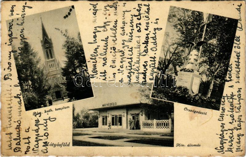 1943 Budapest XVI. Mátyásföld, Római katolikus templom, Országzászló, HÉV (Helyiérdekű Vasút) állomás, vasútállomás (EB)