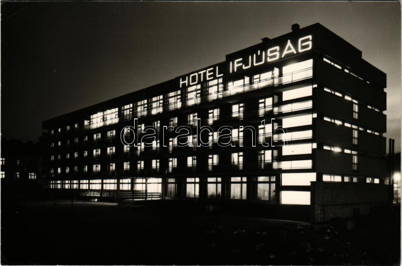 1972 Budapest II. Ifjúság Szálló este. Zivatar utca 1-3. Képzőművészeti Alap (EK)