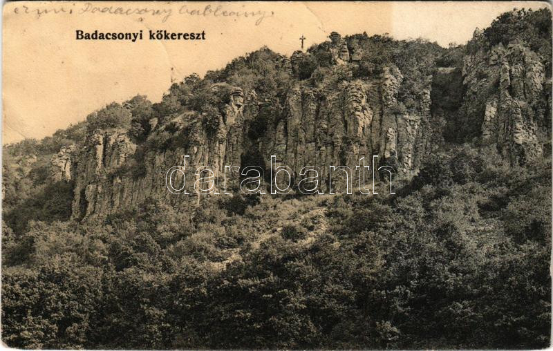 Badacsony, kőkereszt. Balatoni Szövetség kiadása (ázott sarok / wet corner)