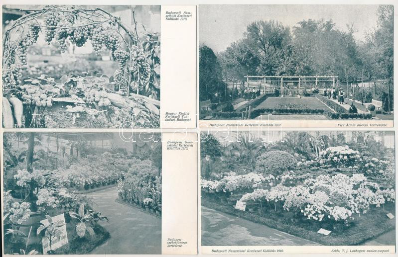 Budapest - 4 db RÉGI képeslap a Budapesti Nemzetközi Kertészeti Kiállításról (1910)