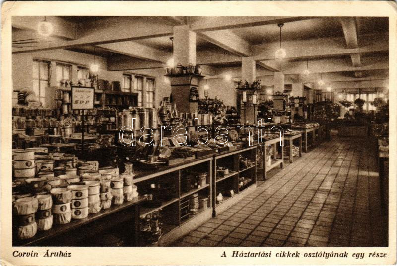 Budapest VIII. Corvin Áruház, a háztartási cikkek osztályának egy része, belső (EK)