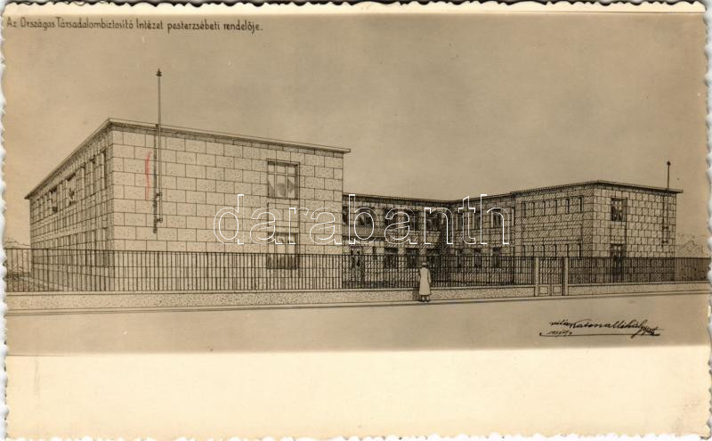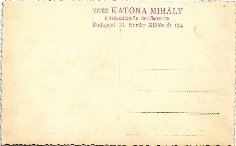 Budapest XX. Pestszenterzsébet, Pesterzsébet, Erzsébetfalva; az Országos Társadalombiztosító Intézet rendelője, a tervező Vitéz Katona Mihály bélyegzője a hátoldalon. photo