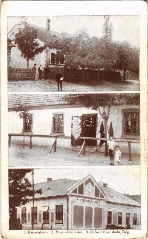 Dég, Községháza, Mayer-féle üzlet, református iskola (ázott / wet damage)