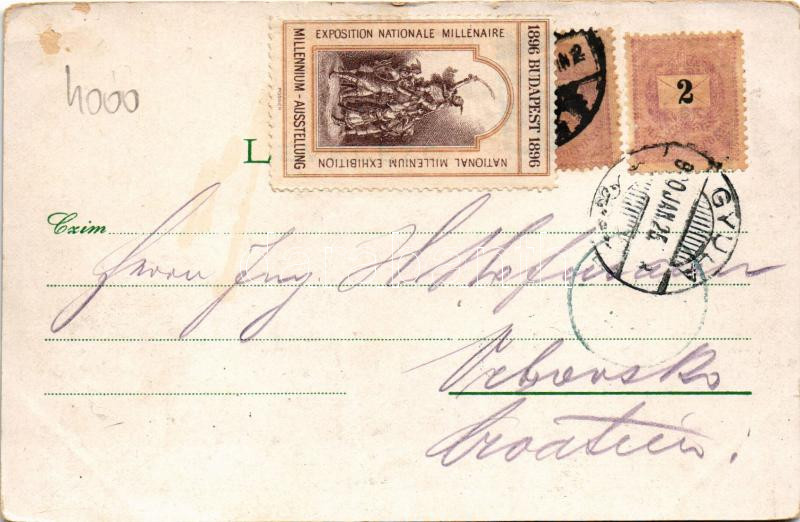Gyula, Megyeháza, Gróf Almássy kastély, Népkerti Pavillon, Közművelődési Múzeum, vágóhíd, Erkel Ferenc szobor, Cognacgyár és pálinkafőzde. Art Nouveau, litho (EM)