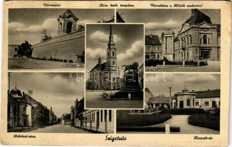 Szigetvár, Rákóczi utca, vár, Római katolikus templom, Városháza, Hősök szobra, Kossuth tér (EB)