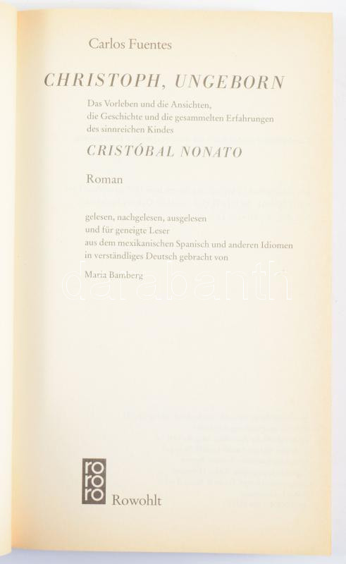 Fuentes, Carlos: Christoph, Ungeborn. 1994, Rowohlt. Kiadói papírkötés, jó állapotban.
